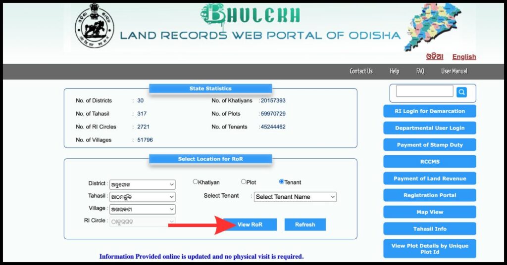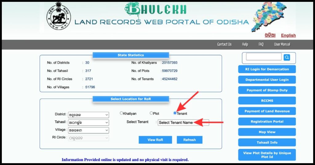 To view plot details on the bhulekh odisha official portal using the tenant name, follow these below steps: