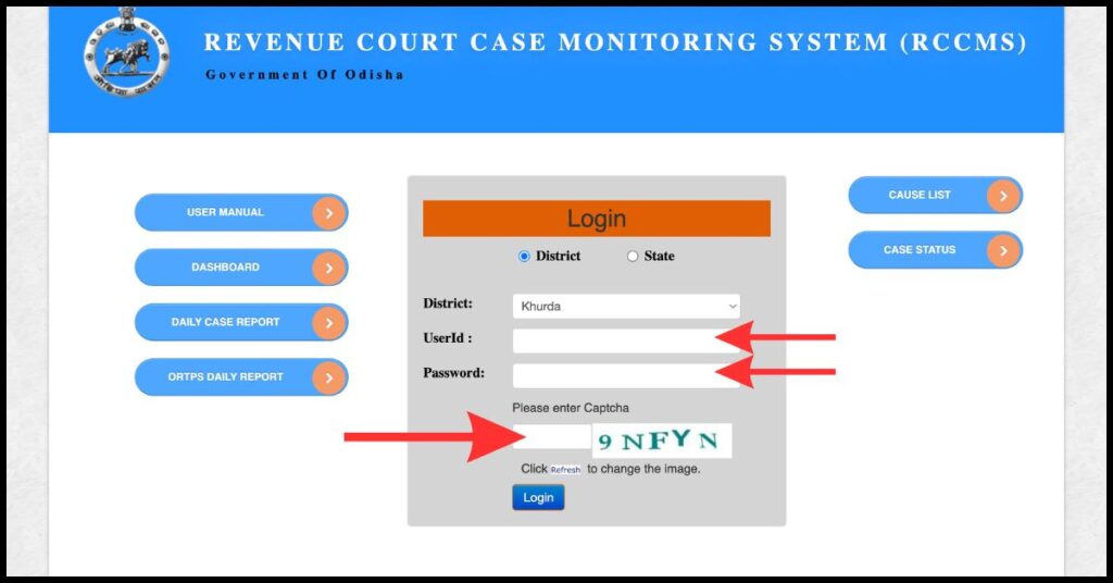 To check the Revenue Court Case Monitoring System (RCCMS) in Odisha, follow the below steps: