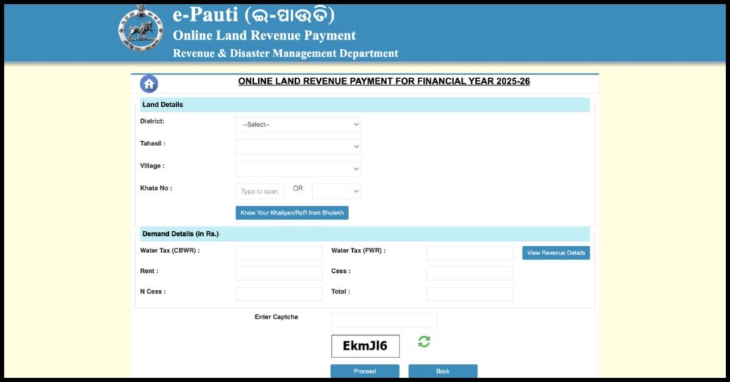 Pay Land Revenue On Bhulekh Odisha Portal