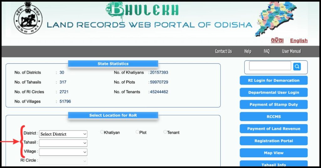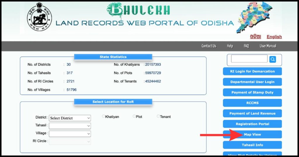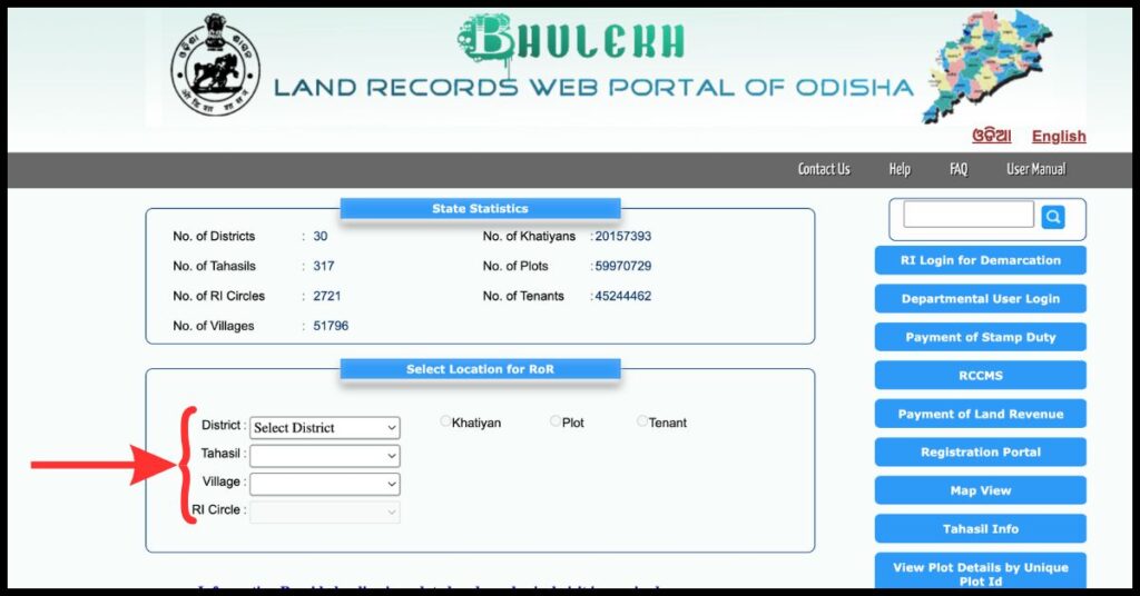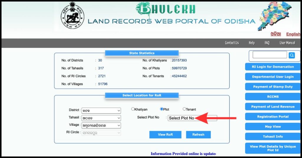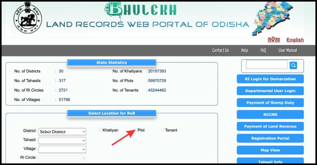To view plot details using the plot number on the Bhulekh Odisha portal, follow the steps given below: