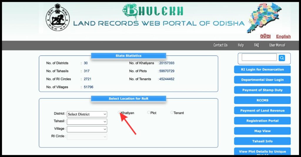 To view plot details using the Khatiyan number on the bhulekh odisha portal, follow these below steps: