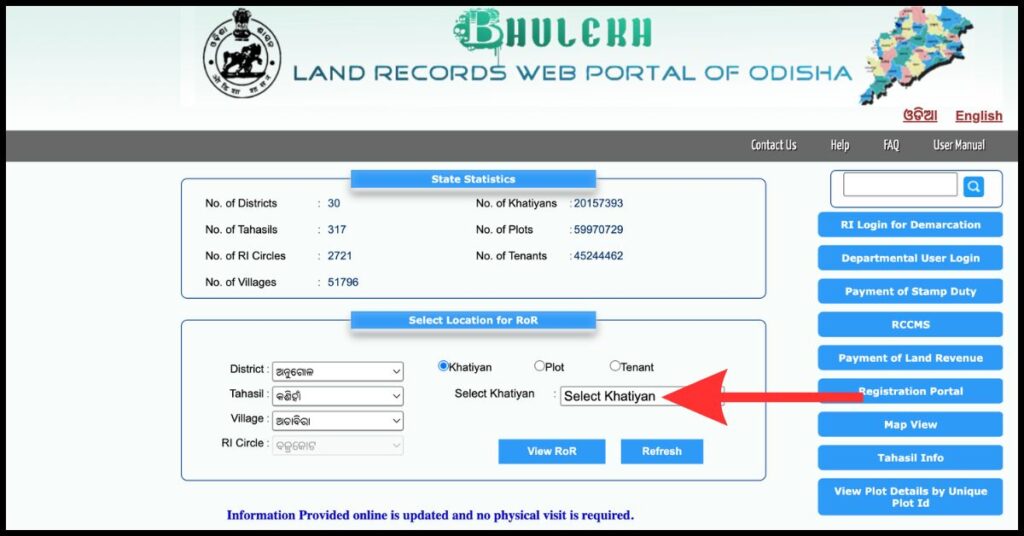 Bhulekh Odisha Plot Details by Khatiyan Number
