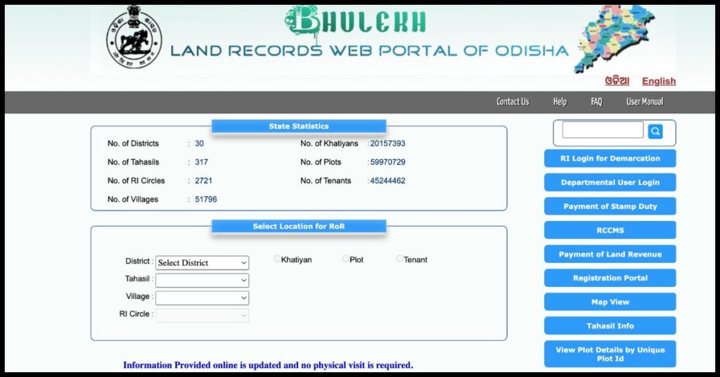 Do you wish to access information related to your bhulekh (land Record) with just a single click? If so, this website brings you almost all the information you need regarding ‘Bhulekh Odisha’. In today’s digitalization, you no longer need to make repeated rounds of government offices to view your land records.