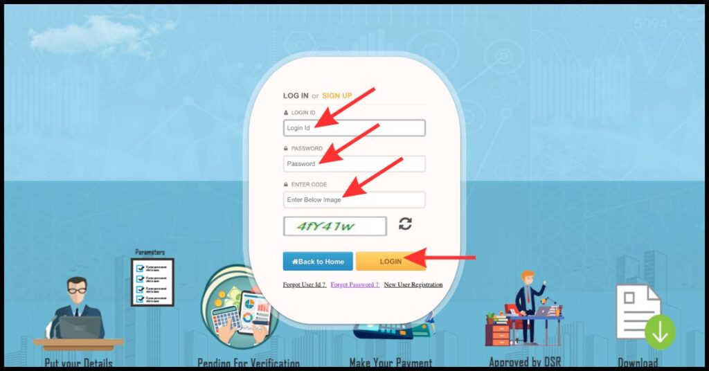 Step 6: Enter Login ID and Password: Add the Login ID, Password, Enter Code and Click on Login Button.